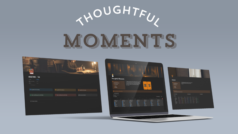Welcome to "Thoughtful Moments" β your go-to Notion template for simplifying daily journaling and habit tracking, designed to cultivate mindfulness and boost productivity effortlessly.